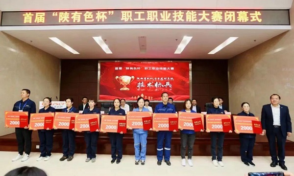 9月28日,首届“陕有色杯”职工职业技能大赛历时三天圆满闭幕。闭幕式上,大赛组委会宣布了比赛结果及表彰决定,并为所有获奖选手颁奖。榆林新材料集团王俊杰、石蕊宁分别获得天车工及化验工(有色行业)比赛第一名,同时被授予 “陕西省机械冶金建材系统技术状元”荣誉称号。
