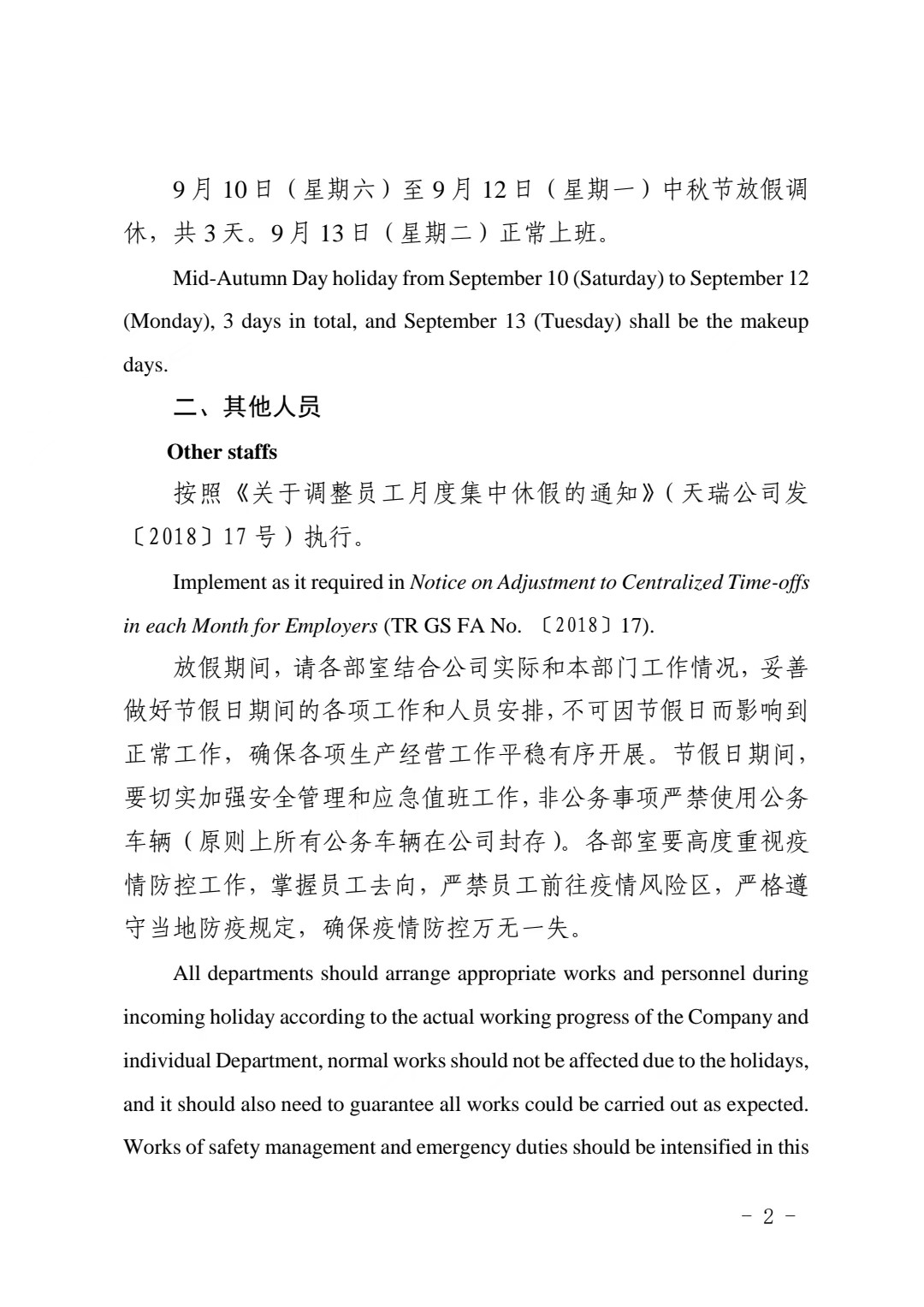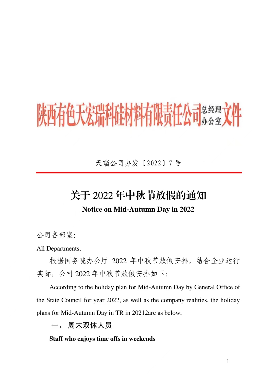 2022年中秋节放假通知